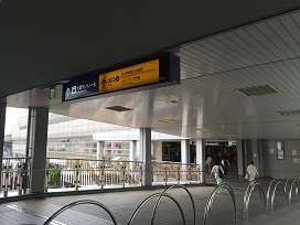 ① 大阪モノレール改札横の出口を南に階段下ります。