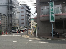 ③ 道なり進み、「松下歯科医院」を右に曲がります。
