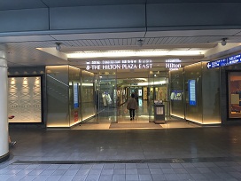 ① 西梅田駅北側改札より地下の「ヒルトンプラザ」入口へ進みます。
