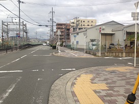 ② 近畿道高架下を通り、突き当りを左へ。道なりに150メートル程進みます。