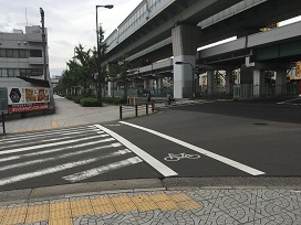 ③ 「磯路3交差点」を渡り、高架下側に駐車場入口があります。