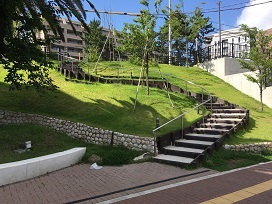 ③ 信号を越えて左側の階段を上った所に駐車場がございます。