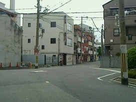 ② ファミリーレストランのある路地を右折します。