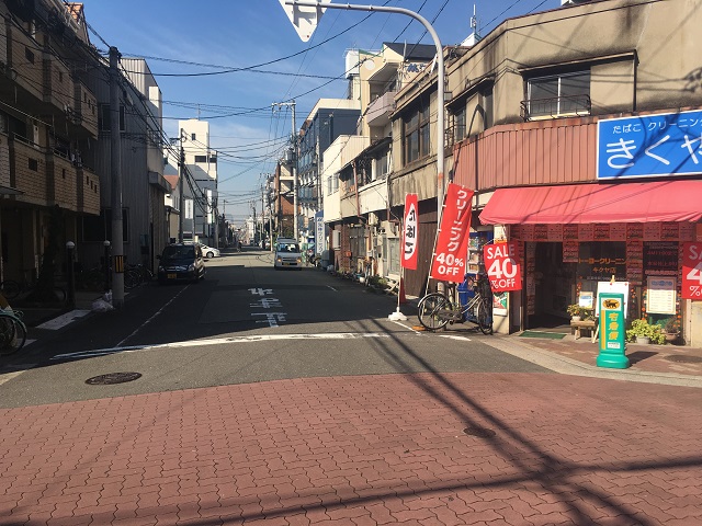 ① 「深江橋駅」5番出口を出て直進します。