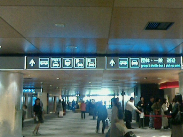 ① (空港内からの案内です。モノレール駅からご利用の場合は②からお読みください。)中央ブロックの到着口を出て、モノレール連絡通路からモノレール駅へ進みます。 |