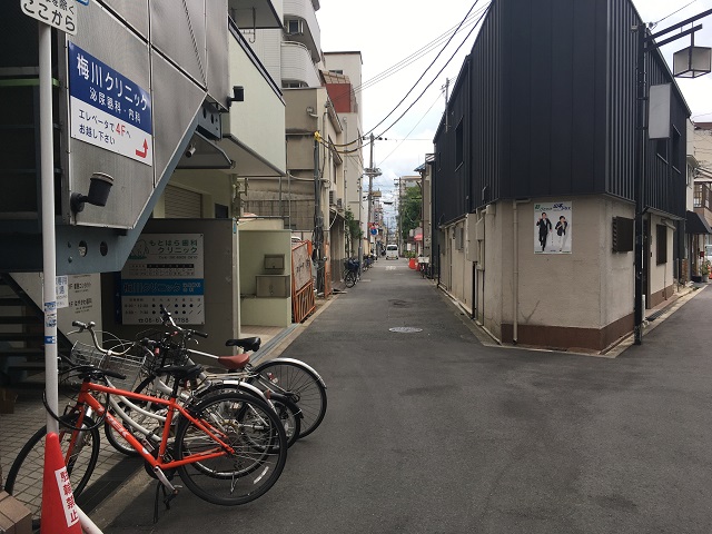 ② 2つ目の路地を右斜めへ進み、交差点先のY字路を左へ進みます。