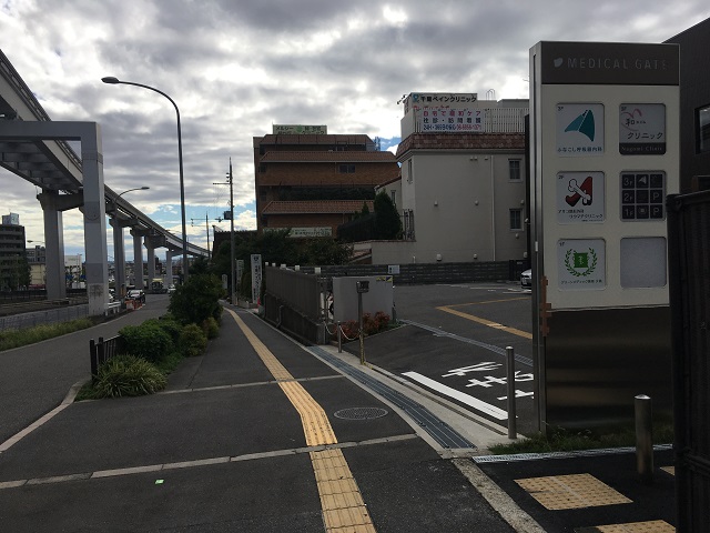 ① 改札を出て左側にあるエスカレータで1Fまで下り、左手の道に出ます。