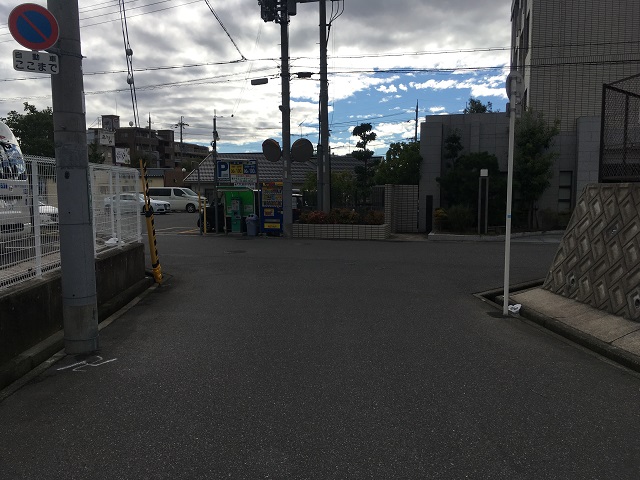 ③ 突き当りを右へ曲がると、50mほど進むと右側に駐車場がございます。
