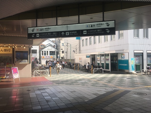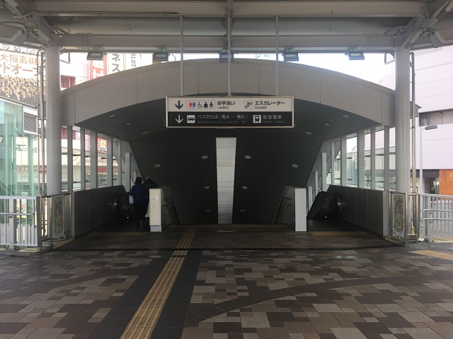 ① JR「高槻駅」中央口を右に出て陸橋を直進、エスカレーターで1Fへ降ります。