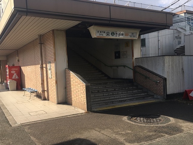 ① 東側1番出口を出て直進します。