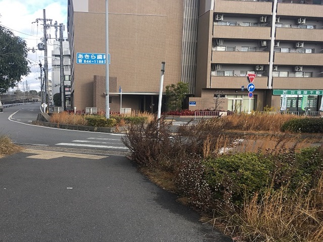 ② 横断歩道を渡り、右へ進みます。
