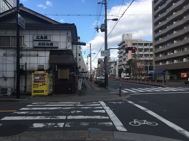 ② 「都島北通1交差点」を左へ曲がります。