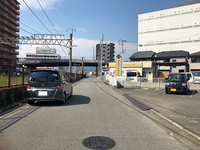 ③ 線路沿いを200m程進むと、右側に駐車場がございます。