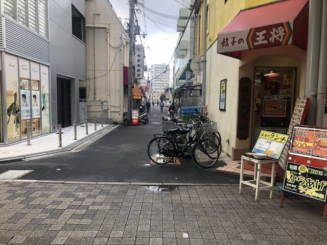 ③ アーケードに入り1つ目の路地を右折、100m程進むと左側に駐車場がございます。