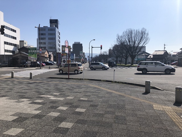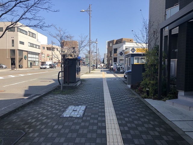 ② 2つ目の交差点まで直進し、反対側へ渡り左へ進みます。