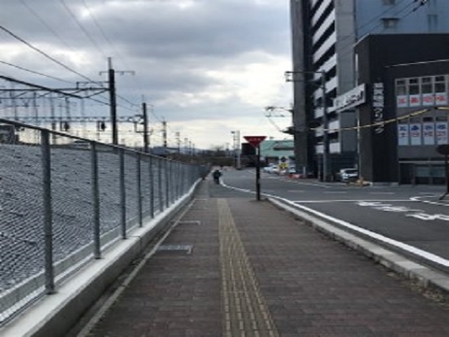② 階段を下り、正面にある線路沿いの道を直進します。