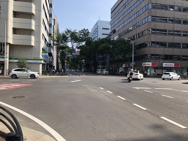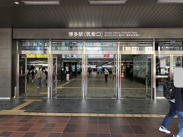 ① 筑紫口を出たらロータリー先にある竹下通りを右折します。