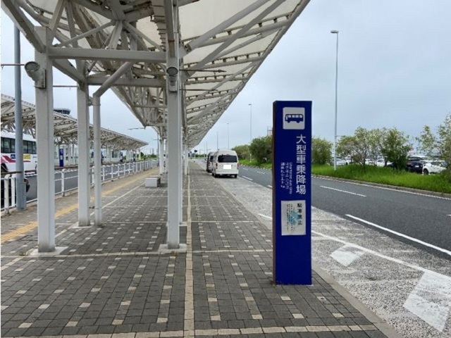 ③ 左手の方向に大型車乗降場があります。オリックスレンタカー北九州空港店(093-474-5777)へご連絡頂くと送迎バスがこの場所へお迎えにあがります。 |