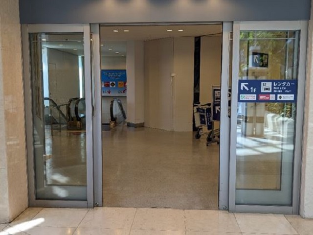 ③ ホテルに入ると左手側に画像のような扉があるので、そちらに入りエスカレーターで1階へ降ります。 |
